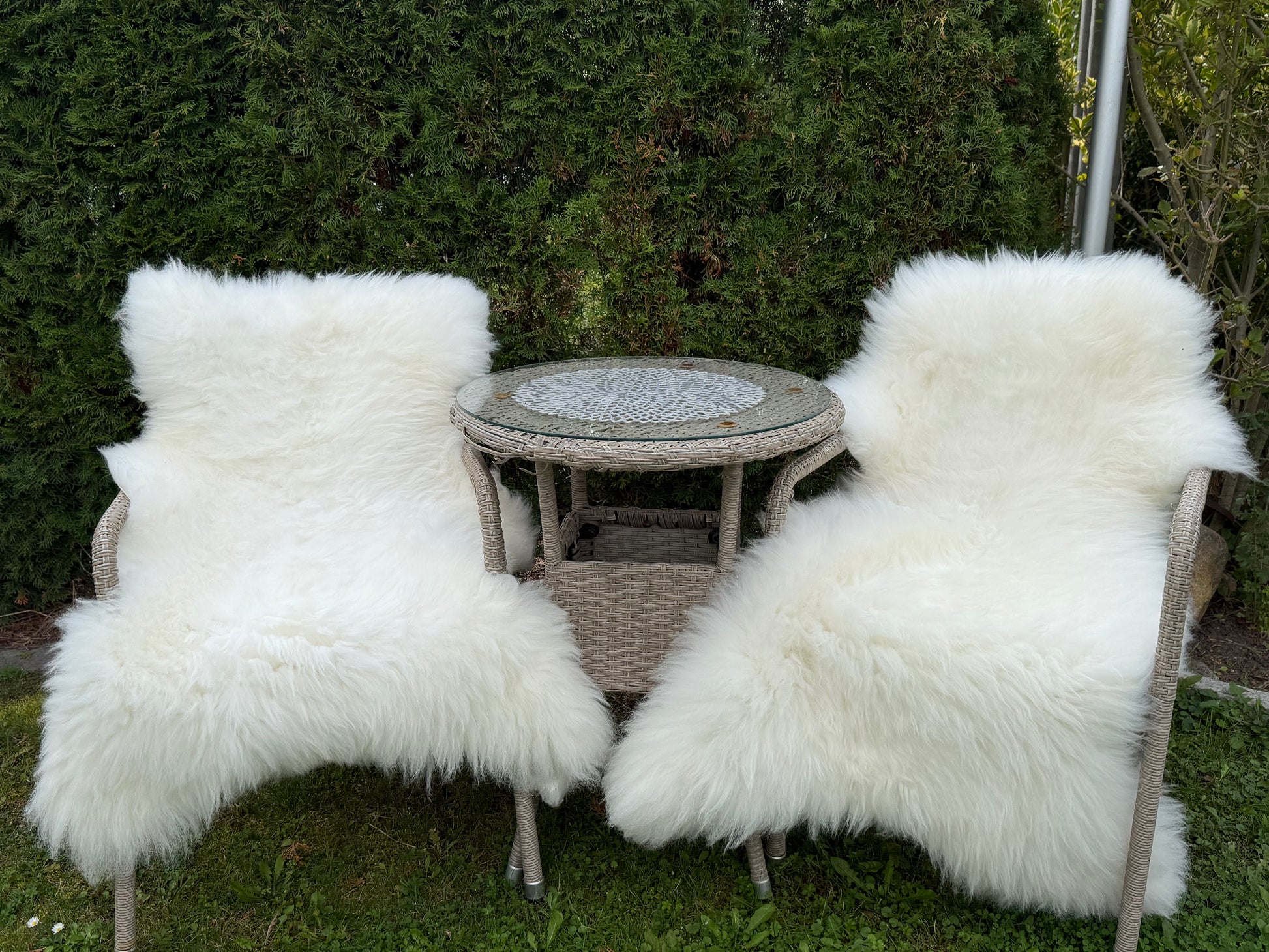 Diese 2 XL Natur Schaffell messen je ca. 110-120 x 80 cm (an den Außenkanten gemessen) und bieten mit ihrer flauschigen, naturweißen Oberfläche ein gemütliches Ambiente für Ihr Zuhause. Ökologisch gegerbt, verbinden sie Nachhaltigkeit mit vielseitiger Dekoration – ideal für Wohnräume, Sessel oder als Wohlfühlelemente. Die hochwertigen, natürlichen Felle sorgen für Wärme und Komfort, während die natürliche Farbe sich harmonisch in jedes Interieur einfügt. Ein besonderer Blickfang, der behagliche Atmosphäre schafft.